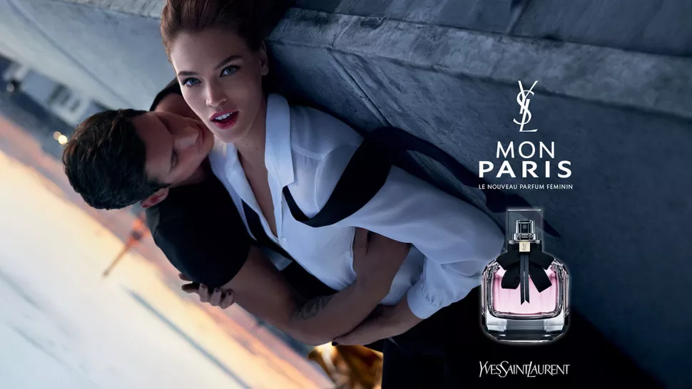 伊夫·圣洛朗(Yves Saint Laurent)于2016年为巴黎(Mon Paris)设计的平面广告采用了直接注视