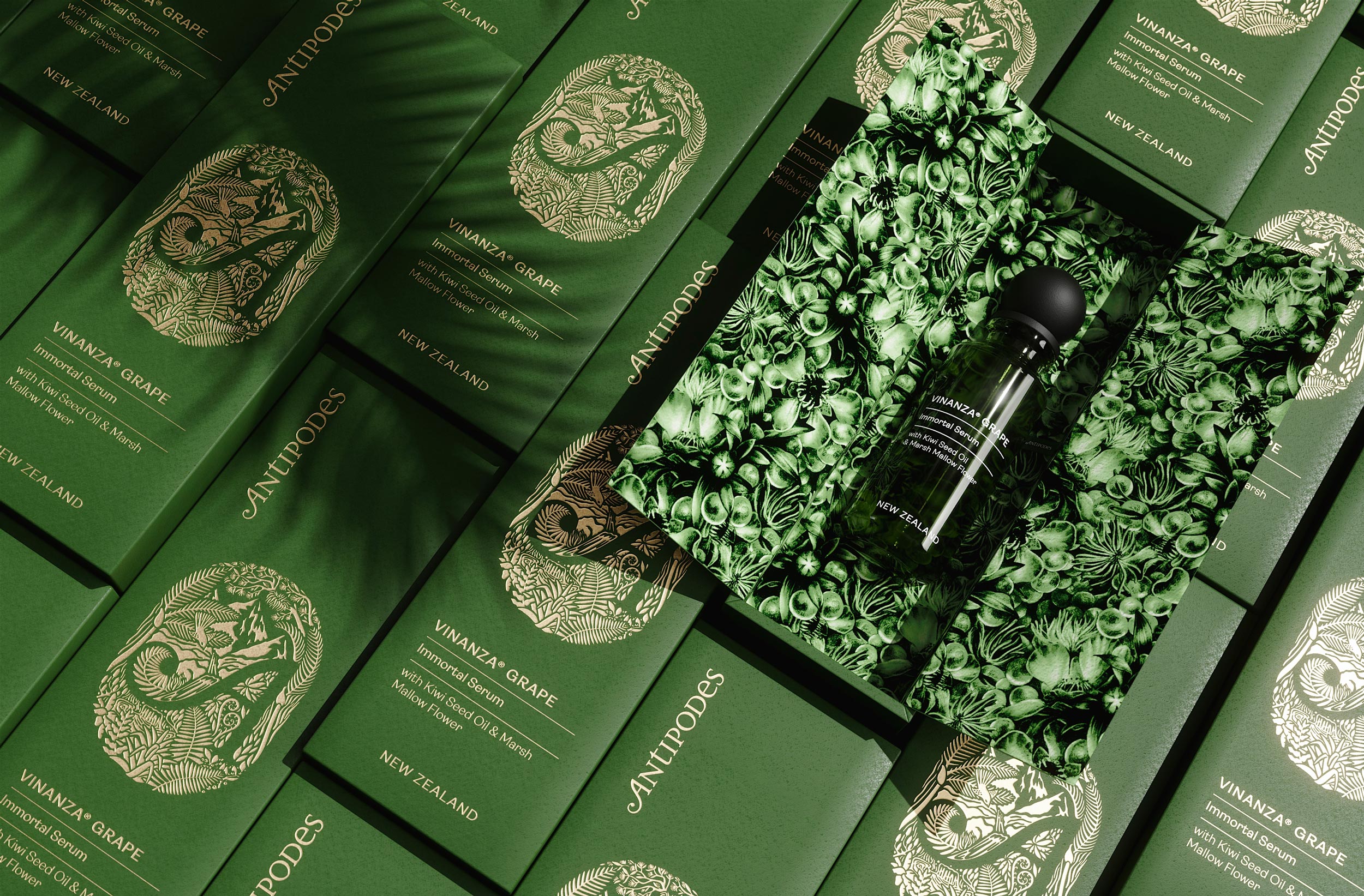 “Vinanza Grape 是一种革命性的抗氧化提取物,可持续地源自马尔堡长相思葡萄籽的副产品。” – 这一声明是我们对新 Antipodes 设计理念的主要灵感。