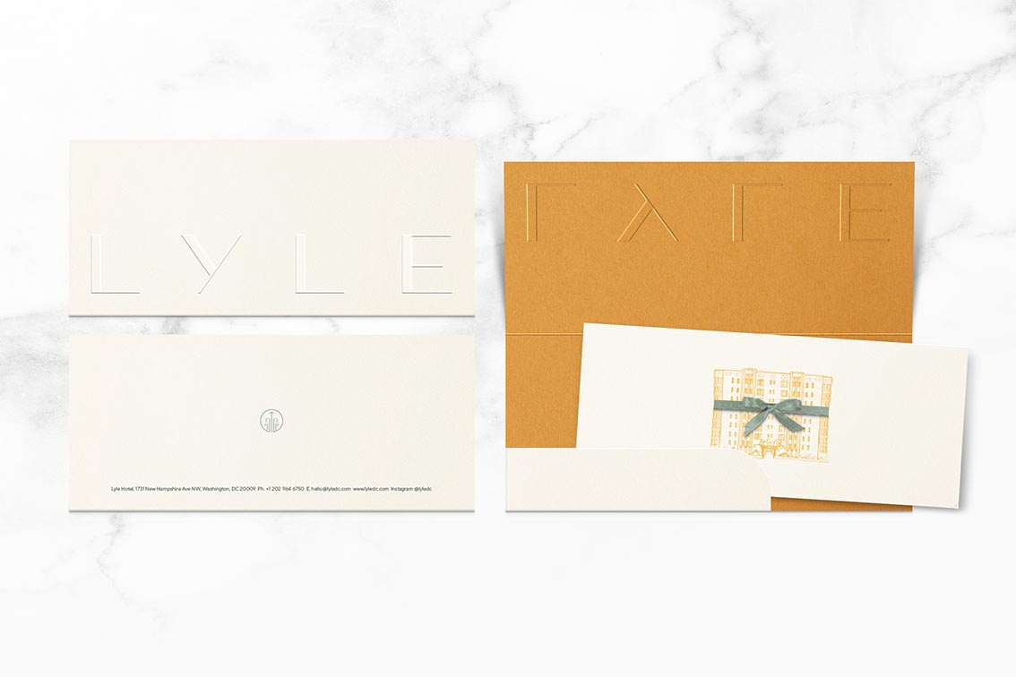 酒店品牌形象设计产生了重大影响。与 Lore Group 的创意总监 Jacu Strauss 合作,伦敦的酒店品牌专家 Colt 的任务是创造一个轻松、不引人注目的身份,将酒店定位为一个独立的思想家。引领身份的定制字标的灵感来自酒店建筑中保留的装饰艺术特色,从外部天篷到入口大堂,而额外的品牌符号则是从以前被忽视的现有外部细节中发展而来的。