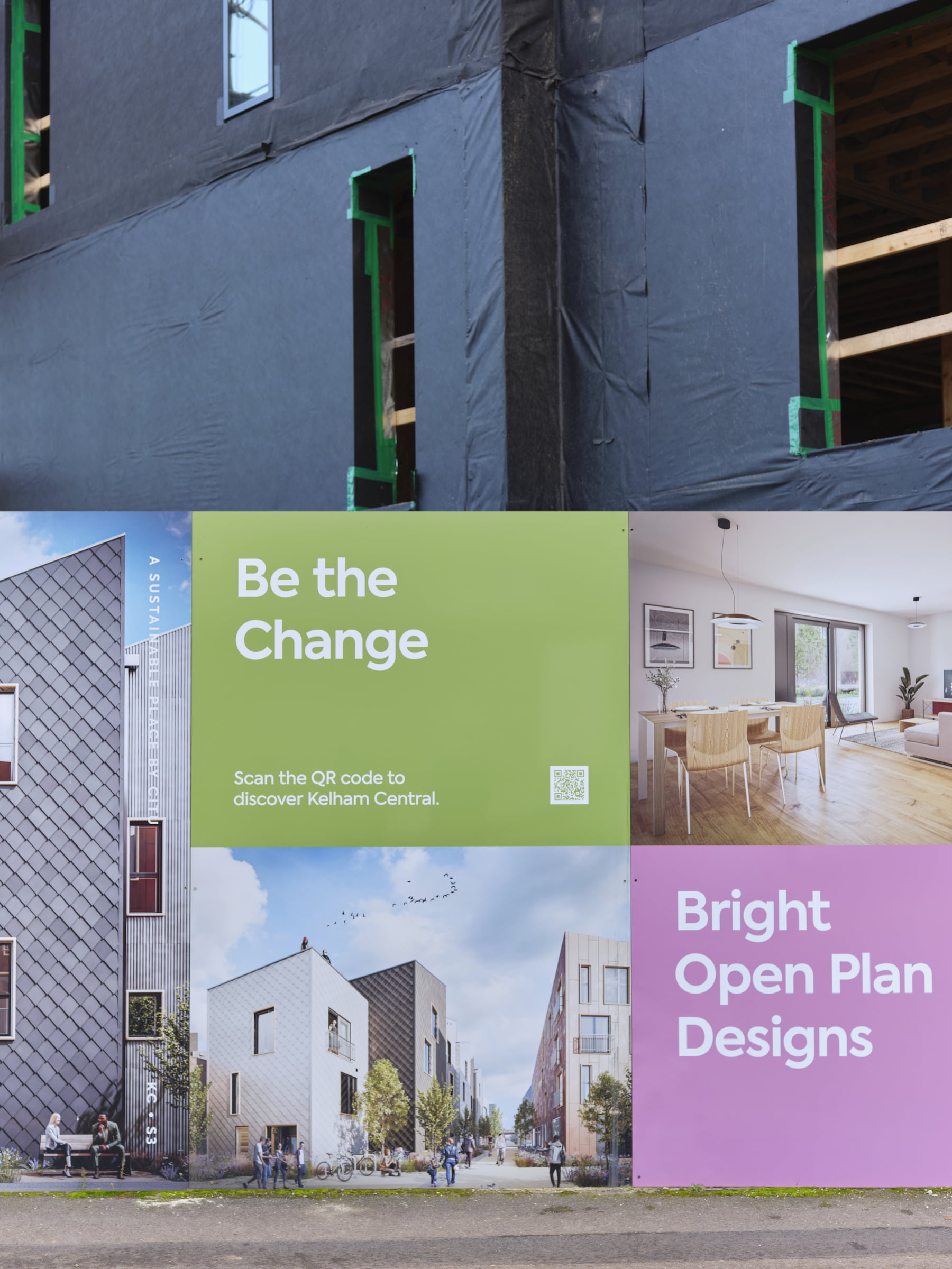 Kelham Central 标志采用定制的排版,受到锯齿状工厂屋顶和维多利亚式砖拱门的影响。两者都是凯勒姆的工业遗产和 Citu 住宅的独特建筑的代名词。
