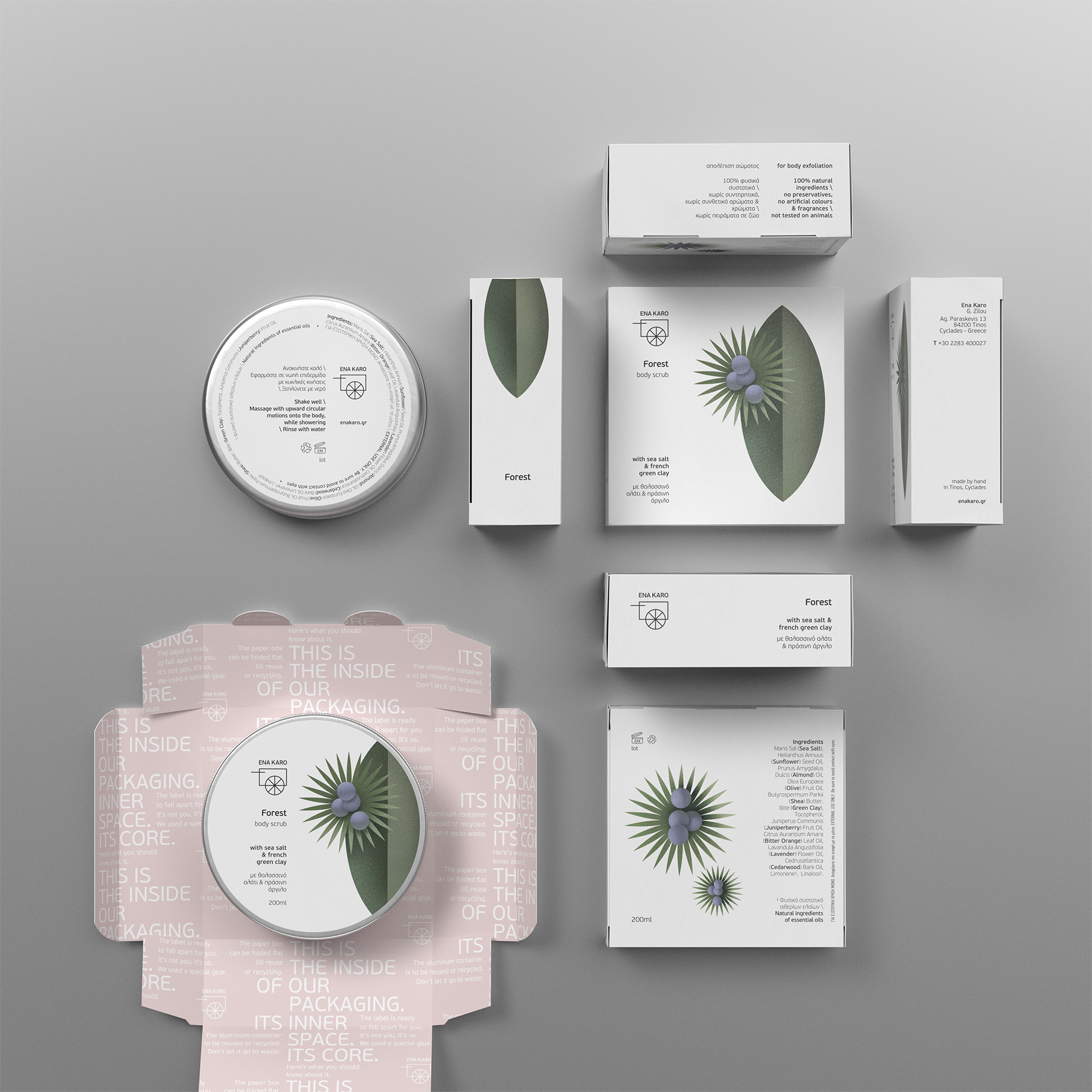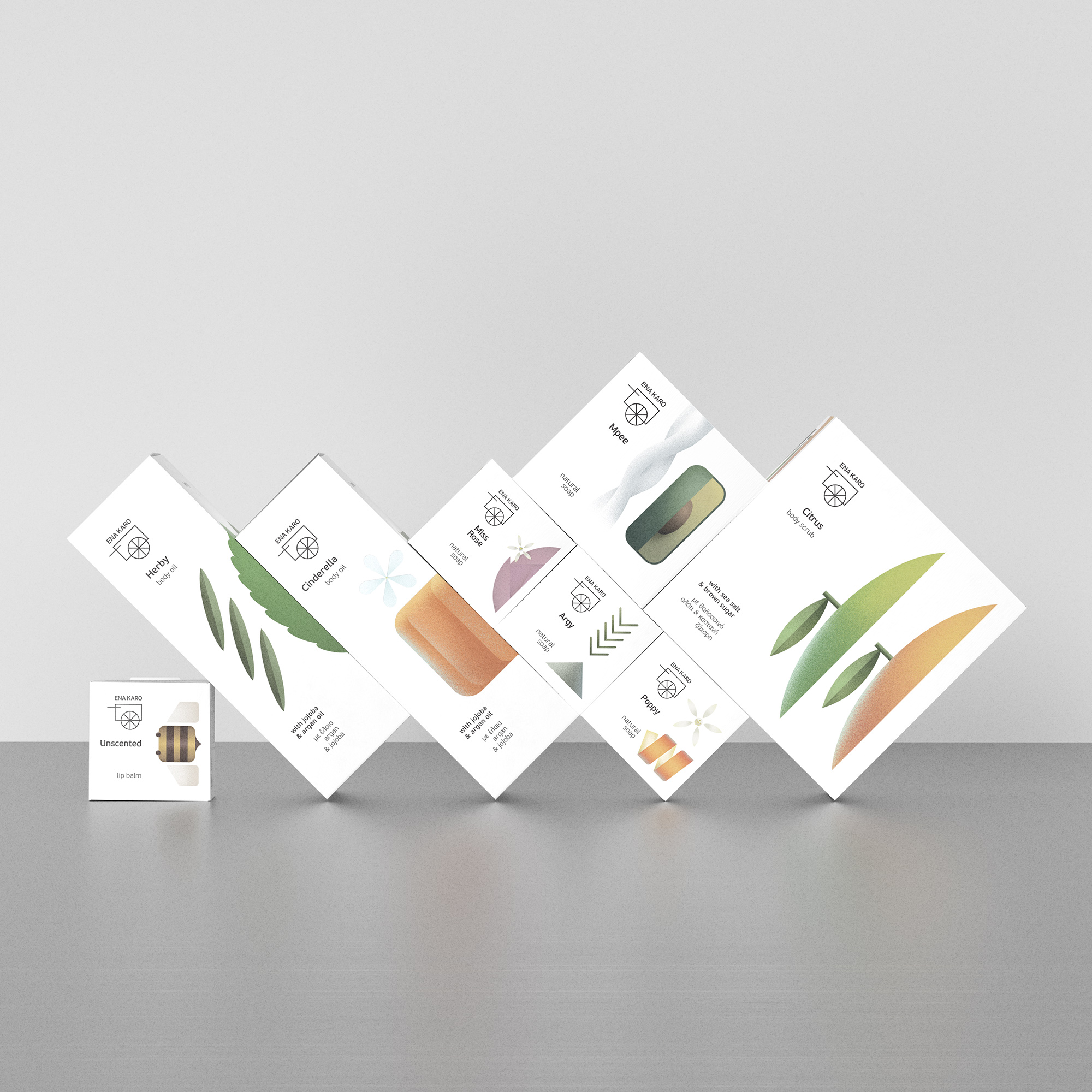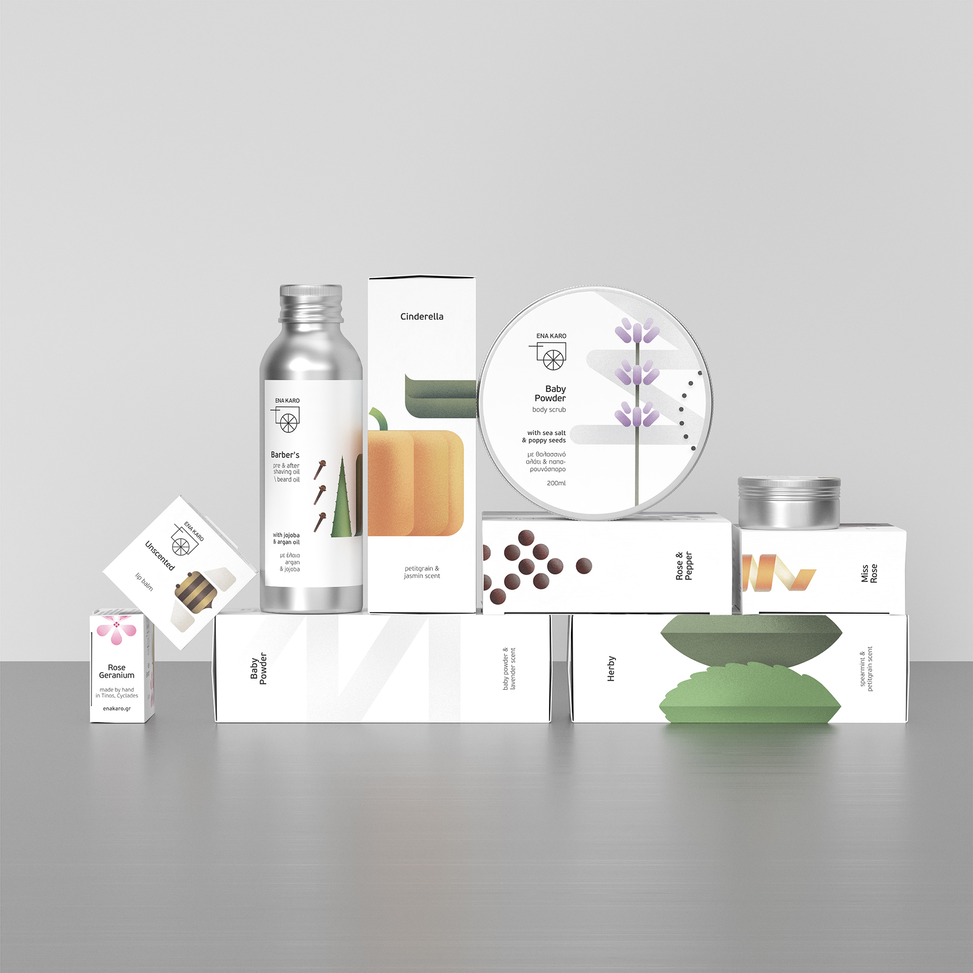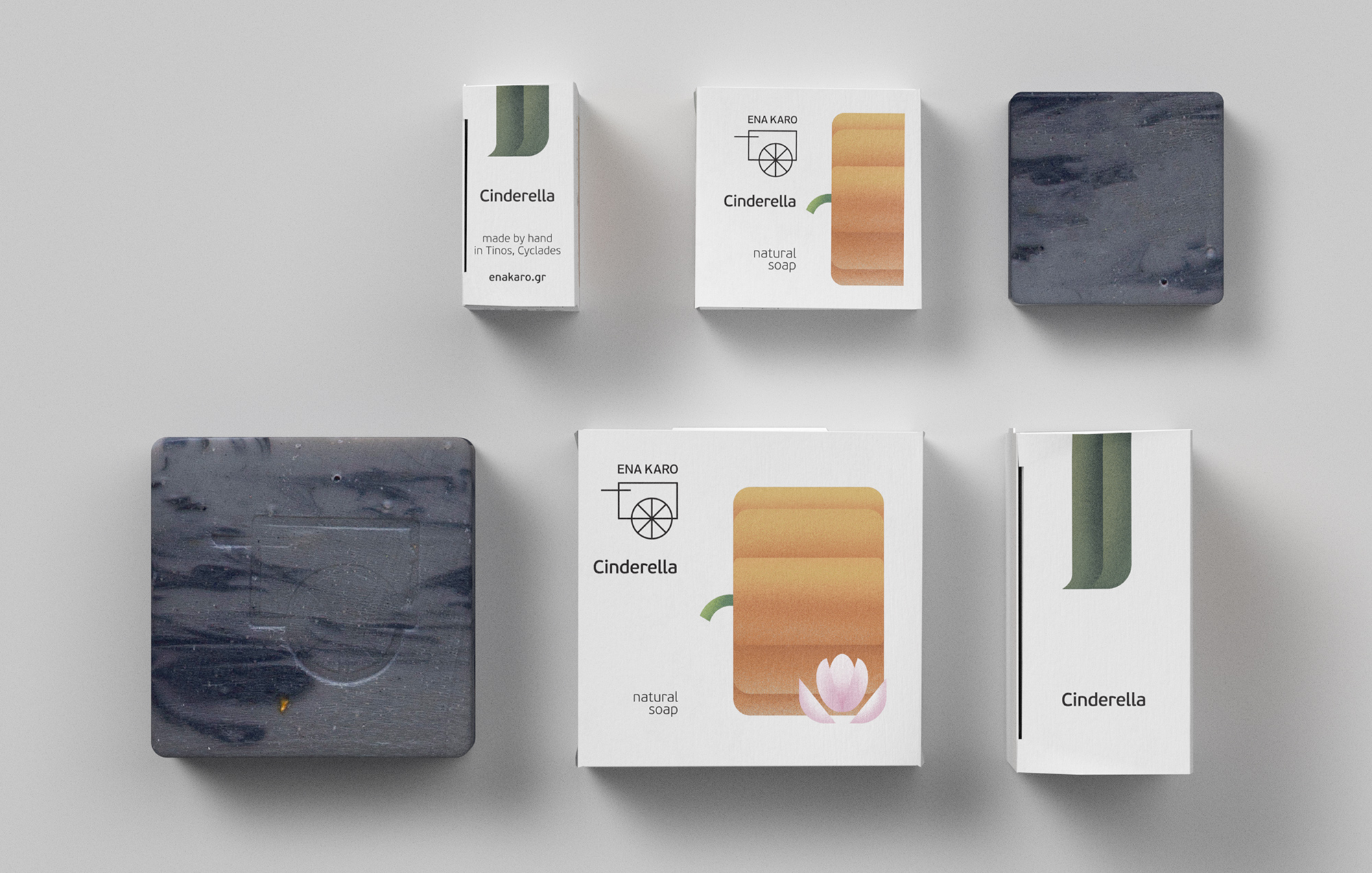Ena Karo 位于希腊蒂诺斯岛,是一家以环保意识生产天然肥皂和洗浴用品的小作坊。我们重新定位了