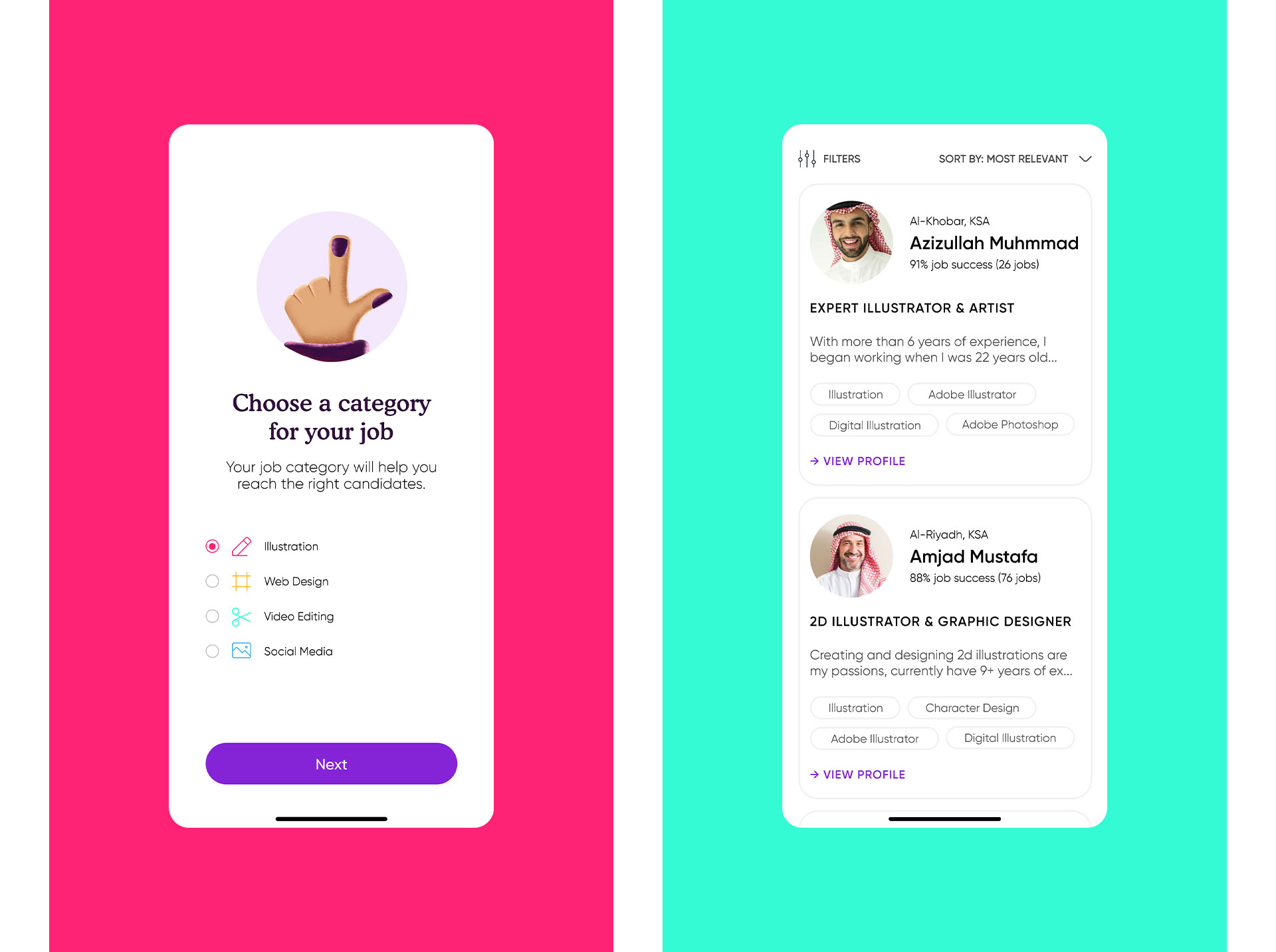 Yejji 是一个以小时制显示临时工作的应用程序,它是寻求灵活就业的个人和提供这些职位的机构之间的联系,通常在平面设计、插图、网页设计、动态图形设计和社交媒体设计中,定位18 至 24 岁之间的个人,他们寻求快速的利润回报和灵活的工作时间以适应他们的日程安排,因为他们仍然是学生。