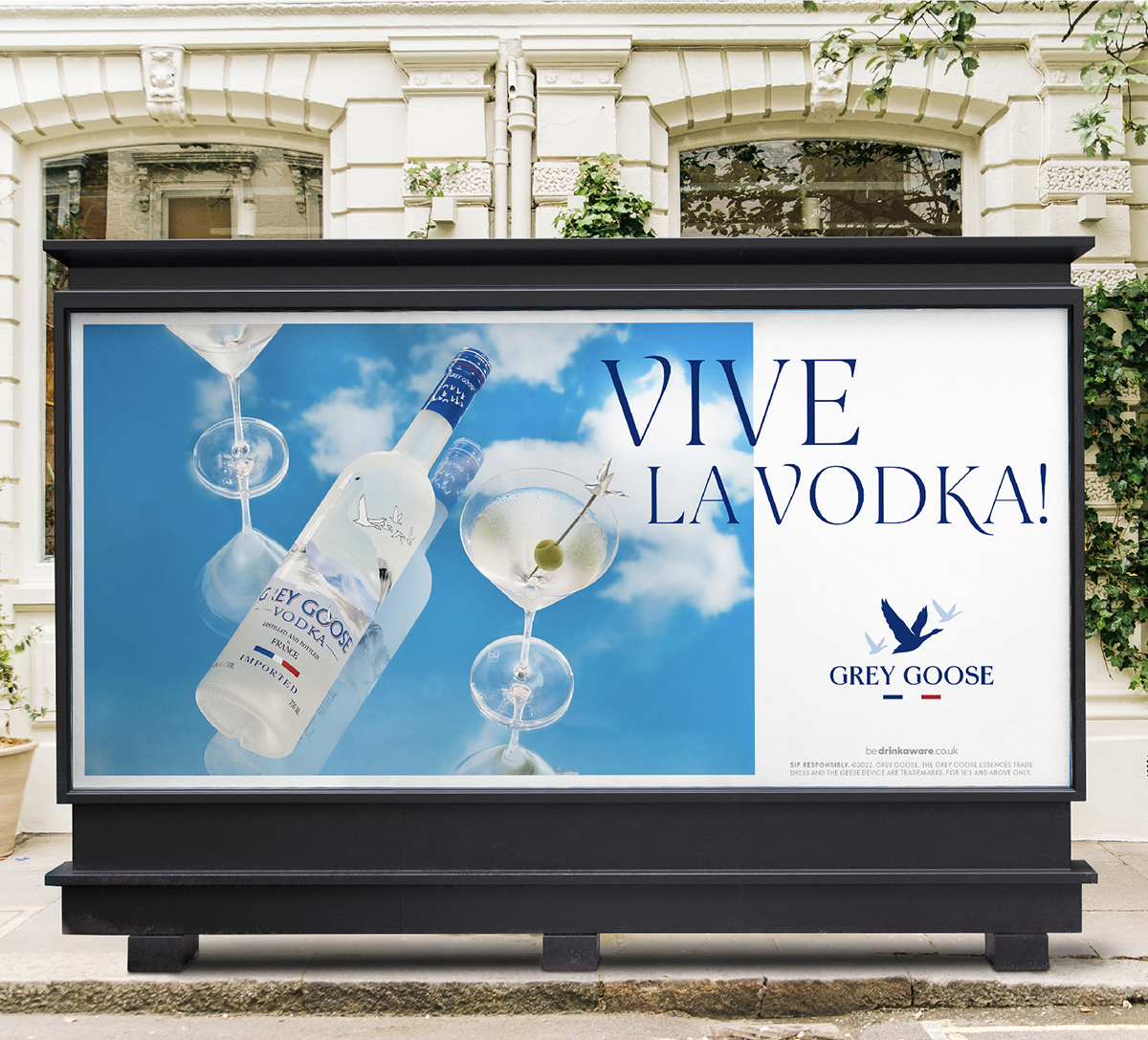 我们重新设计了灰鹅标识的字母形式,以带来流动的优雅感,反映了鹅在飞行中的自然形态和运动。然后将这种美学应用于该品牌的整个定制字体。字体包含交替字形字符的调色板,允许任何创建标题的人为字体带来独特的可变性和流畅性。有一种微妙的流动感,仿佛字体本身是自然的和运动的。字体系列以两种粗细创建,以保持大小比例的易读性。对于徽标制作,我们聘请了超级才华横溢的刻字艺术家“姜猴”的服务,他是我们工作室的长期合作伙伴。字体是与字体铸造厂Dalton Maag合作创建的。所有通信中使用的“Vive la Vodka”系列由广告公司MullenLowe编写。