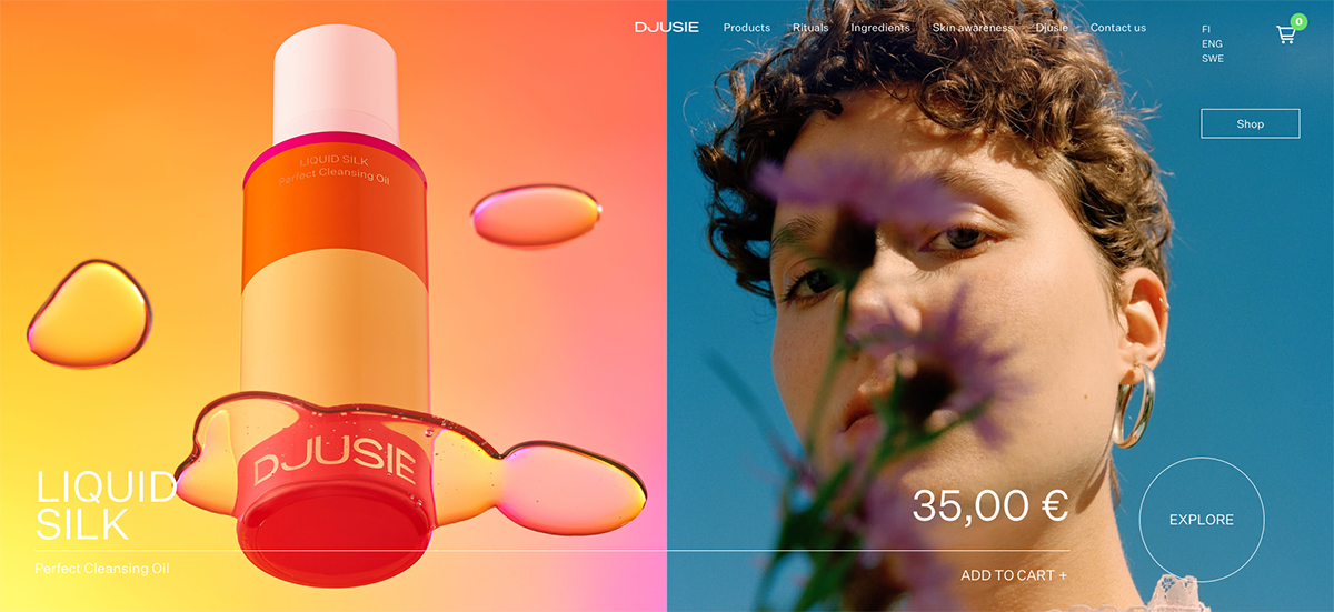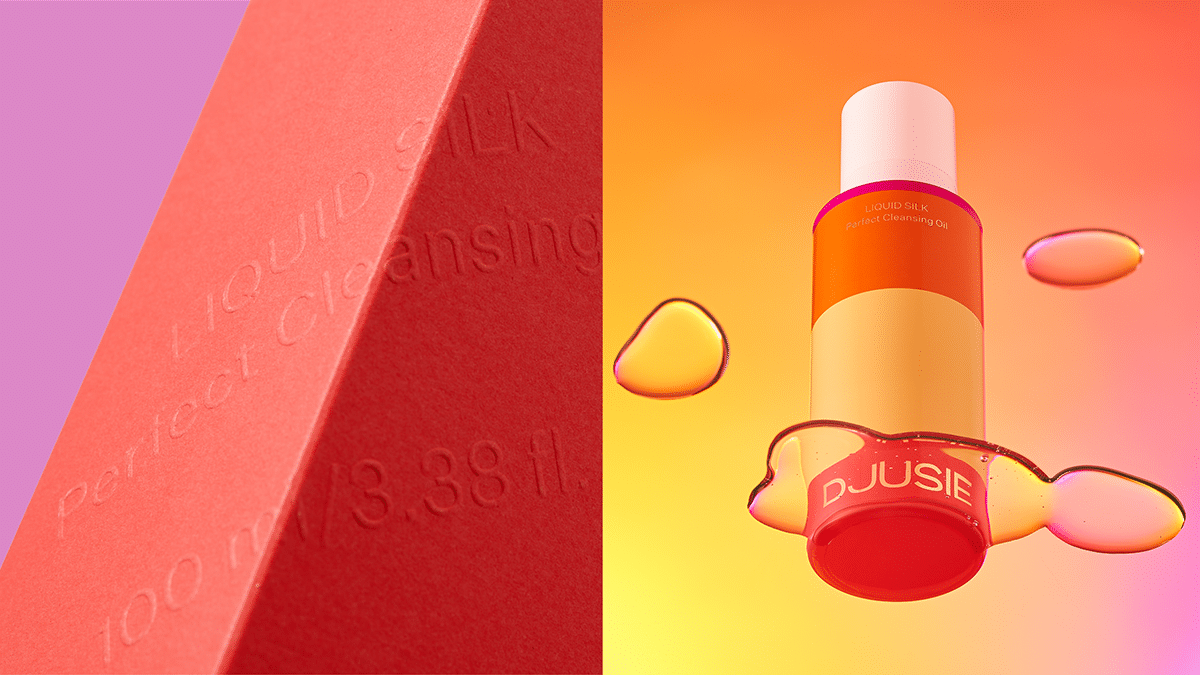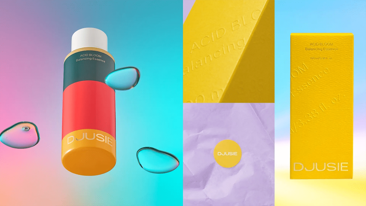 然而,强烈、封闭的颜色还有另一个含义:Djusie 故意将自己定位为适合所有人的中性护肤品。这也反映在包装镜头背景中发光的彩虹渐变以及Djusie网页设计和社交媒体中多样化的演员阵容中。