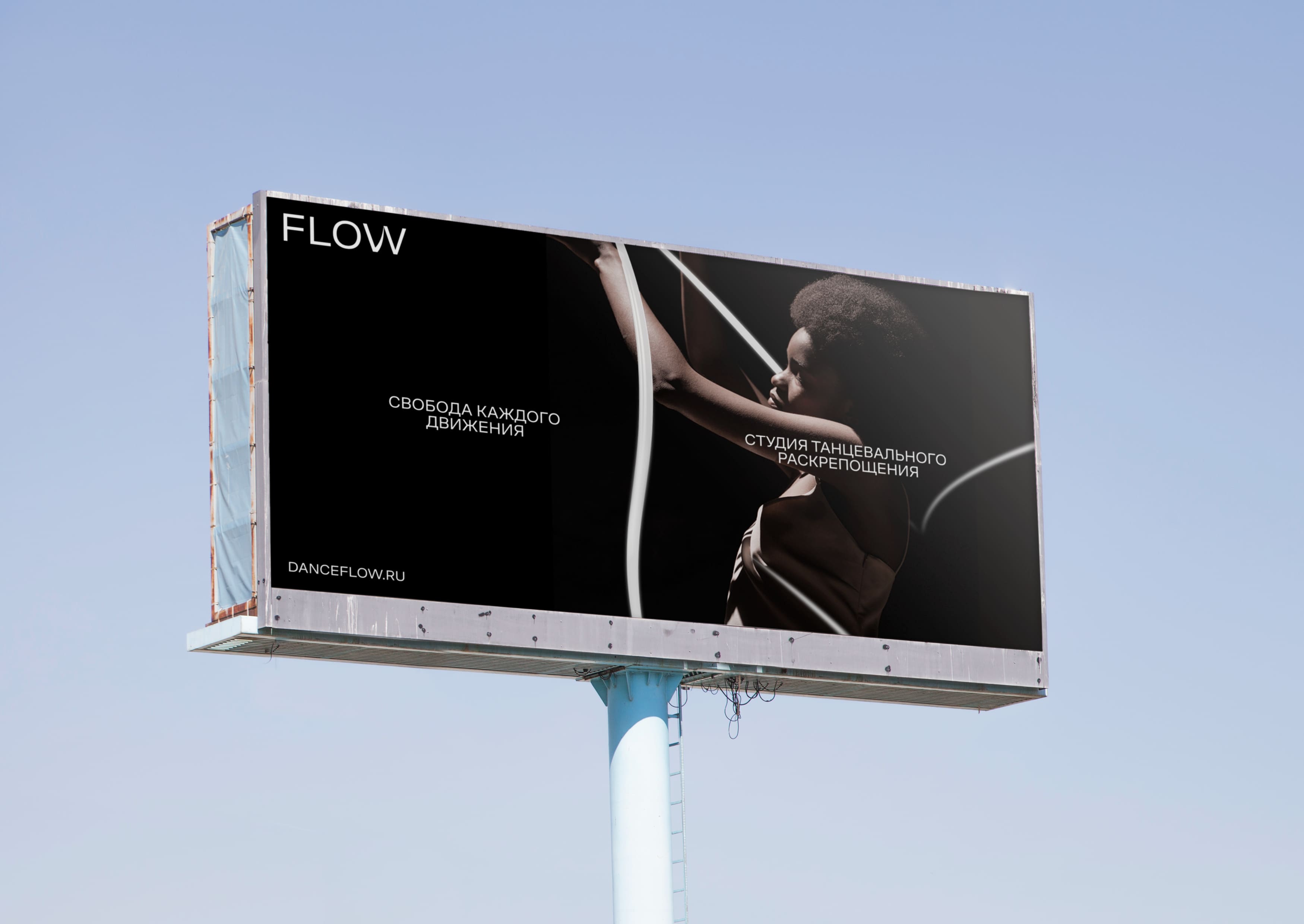 “Flow”标志在字母W中有一个上升的魔杖,代表精神上的上升,波浪,上升到顶峰。品牌元素贯穿整个视觉传达,形成品牌标识。为Flow品牌开发了街头广告和社交网络,商品,近似3D工作室空间,用于录制课程的个人网站以及对FLOW工作室的熟悉。