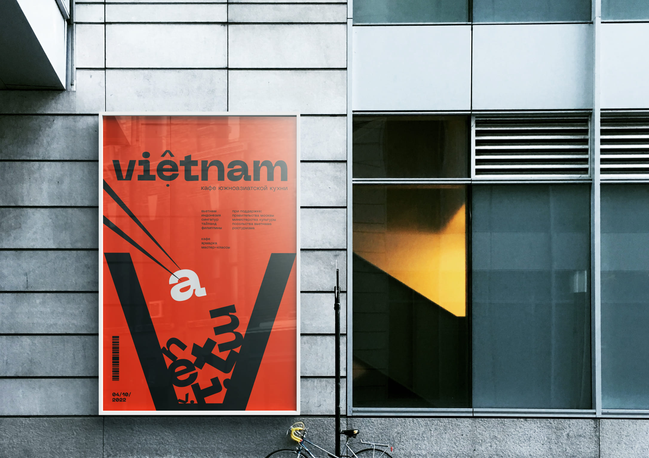 该项目选择了Neue Machina字体,它强调了品牌的范围 - 亚洲美食和街头食品。此外,咖啡厅不仅供应民族美食,还在周五和周末举办大师班。此外,还有来自南亚国家的稀有商品和香料的博览会。因此,字体还强调了餐厅组织的非凡方法。