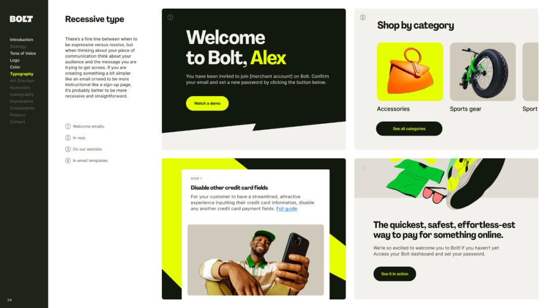 Bolt的主打产品是一体化无缝结账系统,相较传统客人结账方式,能有效提高购物者转化为买家的比例。BOLT期望在电子商务市场中独树一帜,展示其现代且创新的品牌形象。