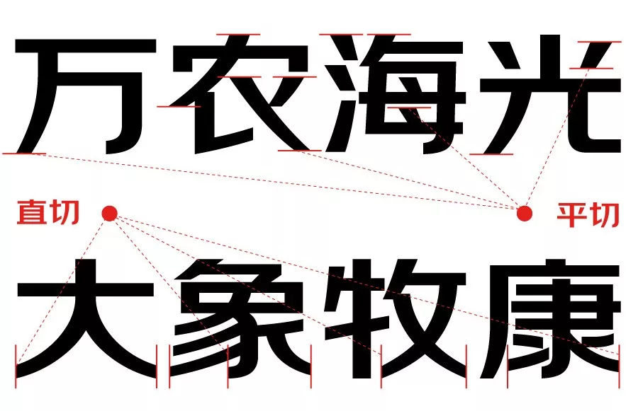 接下来通过130多个字逐步确定了字体的基本部件。 在笔画方面,京东朗正体采用了大量的平切、直切的笔画切角方式,尤其在起笔和收笔处,这样的笔画设计给人的视觉感受就是直接、干净利落、有科技感,也比较简洁时尚。 在整体字形方面,京东朗正体呈现出偏扁的形态。偏扁的字形会让字体显得稍微另类、比较富有有个性,无形中增添了更强的识别性。 考虑到中西文搭配的美观度,同时又能传达互联网的科技感以及年轻用户群体追求的精致感,京东朗正体的西文设计也是采用偏几何状的造型,尽可能的用几何元素来表达。