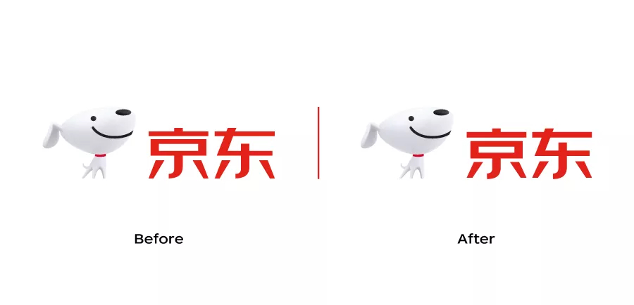 以“京东”二字为例,首先,我们对横竖比例进行了调整。原来的“京东”二字,横比较细竖比较粗,为了强化力量感的传达,设计师反复思考、不断尝试,最后将字体横竖比例定为了2:3。横竖比例的改变,让整个字的灰度变得稳定、均匀,也显得更稳重、更有力量感。