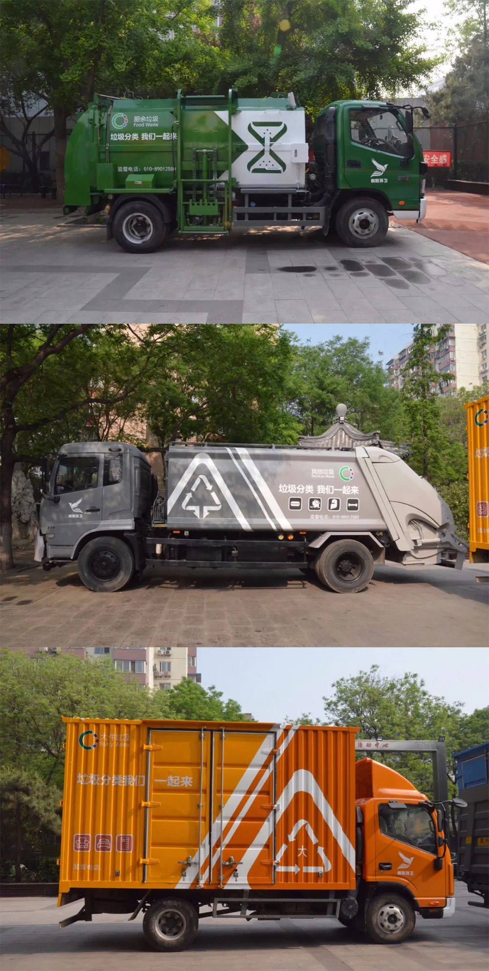 垃圾分类LOGO、分类驿站桶站、密闭式清洁站、收运车辆,作为垃圾分类系统全链条的重要支撑点,在设计上力求做到「三个统一」,即:统一垃圾分类标识标牌、统一设施设备色调风格、统一收运车辆外观形象。