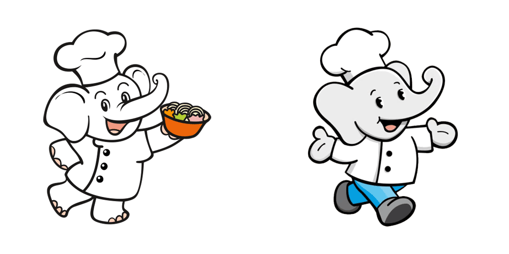 相比上个版本,首先新版卡通大象去掉了「手持面碗」,然后张开双臂。其次白象的轮廓细节进行了简化并增加了阴影效果,而且白象的身体增加了更多灰色,看起来更像是一头穿着厨师制服的灰色大象。另外,大象的裤子增加了蓝色,据说是象征了创新与自然,纯真与活力。