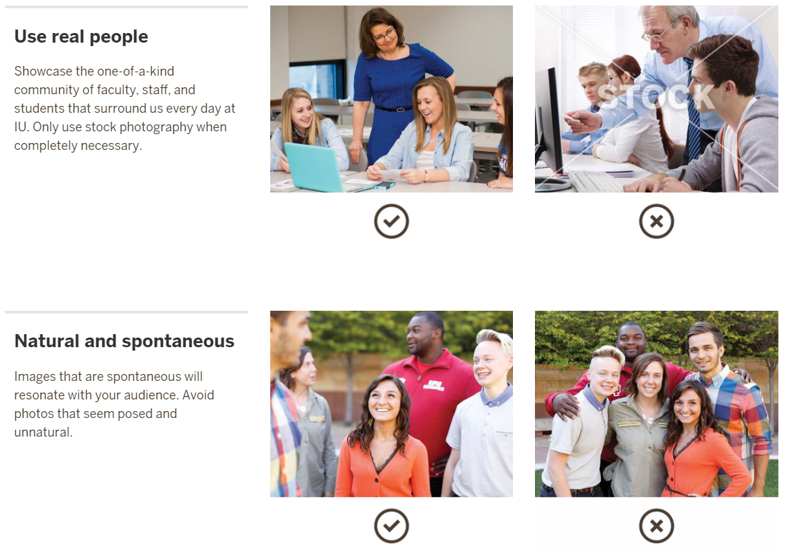 还包括适当的和非品牌图片的示例,例如印第安纳大学的摄影最佳实践。
