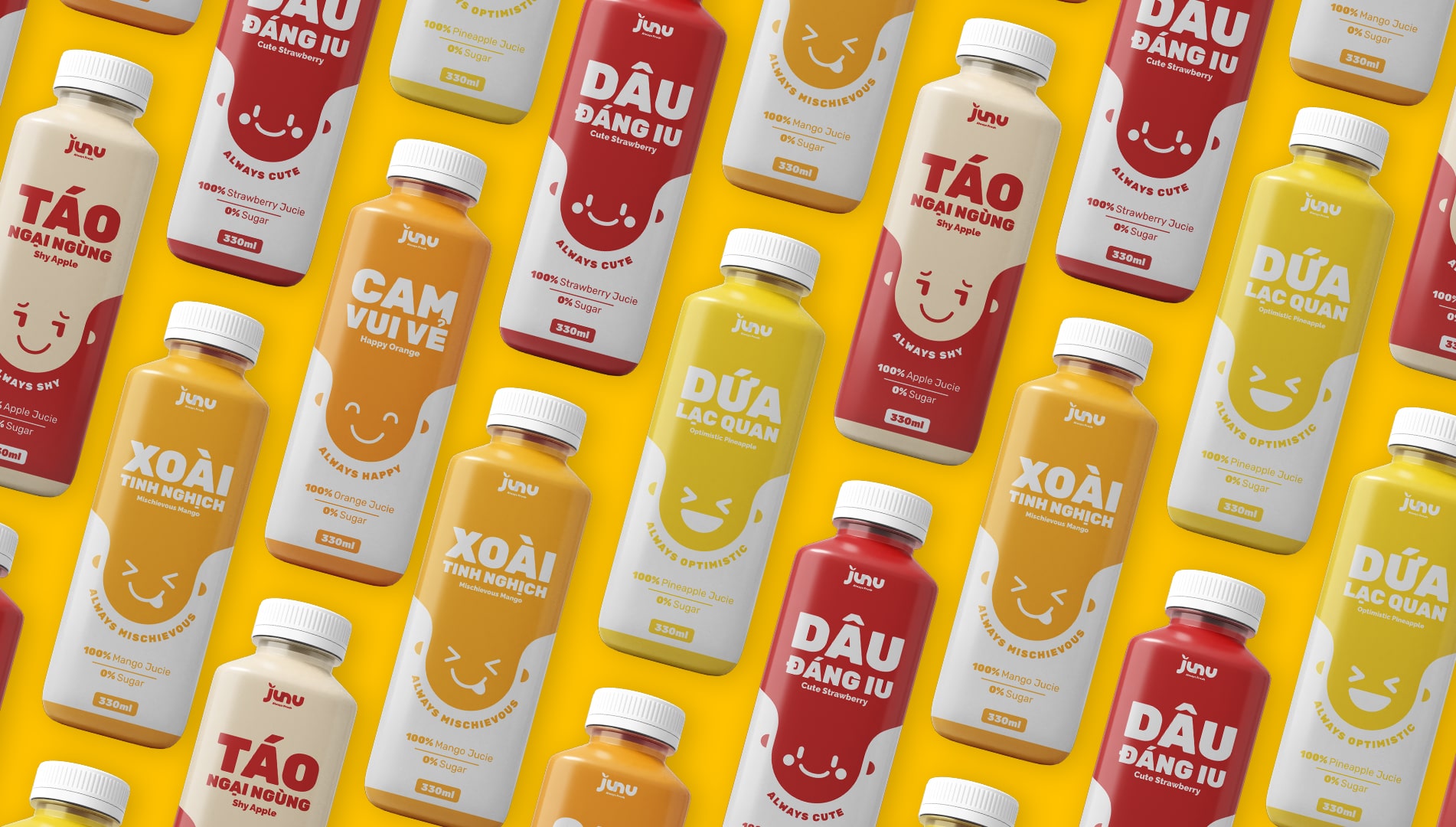 带有情感的果汁瓶将帮助客户感觉与水瓶互动。Junu的包装以日常的人类情感为灵感,突出品牌个性,用可爱的图案来描述情感,辅以极简的色彩,帮助用户更好地接触到JUNU的果汁产品。没有什么比与我们使用的东西互动更好的了,对吧?