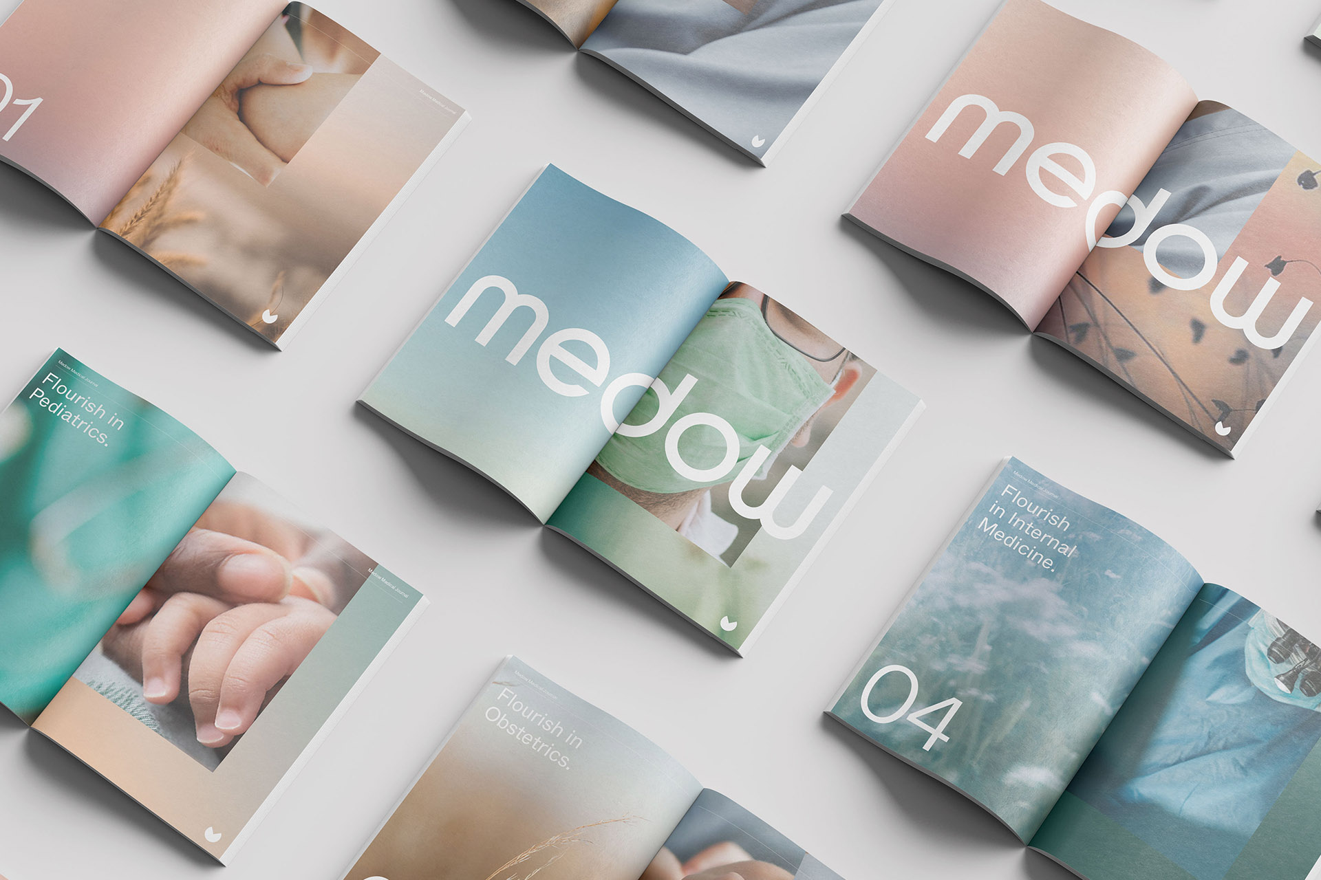 与“Medow”这个名字的魅力和相关性相辅相成的是一个美丽的标语,“在你的领域蓬勃发展”。这完美地抓住了他们目的的本质,并为整个身份中使用的叙述奠定了坚实的基础。我们采用了这种语气,进一步增强了自然的存在感,并营造出一种医疗保健专业人员在其中工作的不断变化、不断发展的环境的感觉。