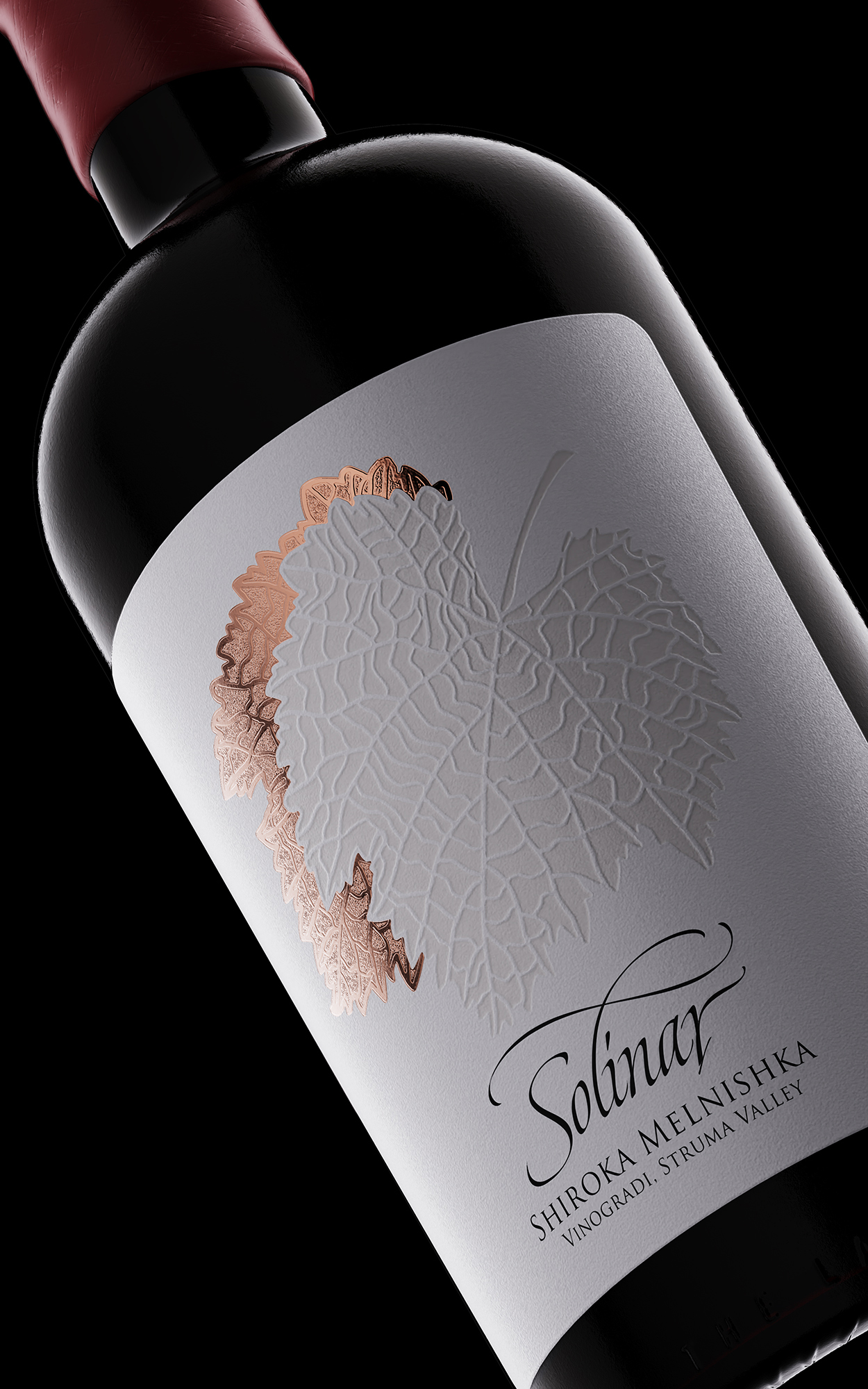 Manchov Chiflik是一家小型家庭酿酒厂,位于Vinogradi村 - 位于保加利亚最有趣的葡萄酒产区之一斯特鲁马河谷的中心。他们的葡萄园所在的地区被称为索利纳尔。这就是葡萄酒品牌名称的由来。这是一个有着极其严肃和悠久的葡萄酒种植和酿造传统的地方,我们以某种方式希望在标签本身的设计中继续这样做。经典的葡萄酒标签设计进行现代演绎。通过这种方式,我设法传达了过去与未来之间联系的主题。我试图在我的工作中既传统又创新。甚至瓶子本身的选择也非常不同,这为我定义了如何处理这个项目。我们选择了一个非常原始的波尔多风格的瓶子——比标准轮廓更短、更宽。它让我以不同的方式思考,并感受到整个项目的个性。
