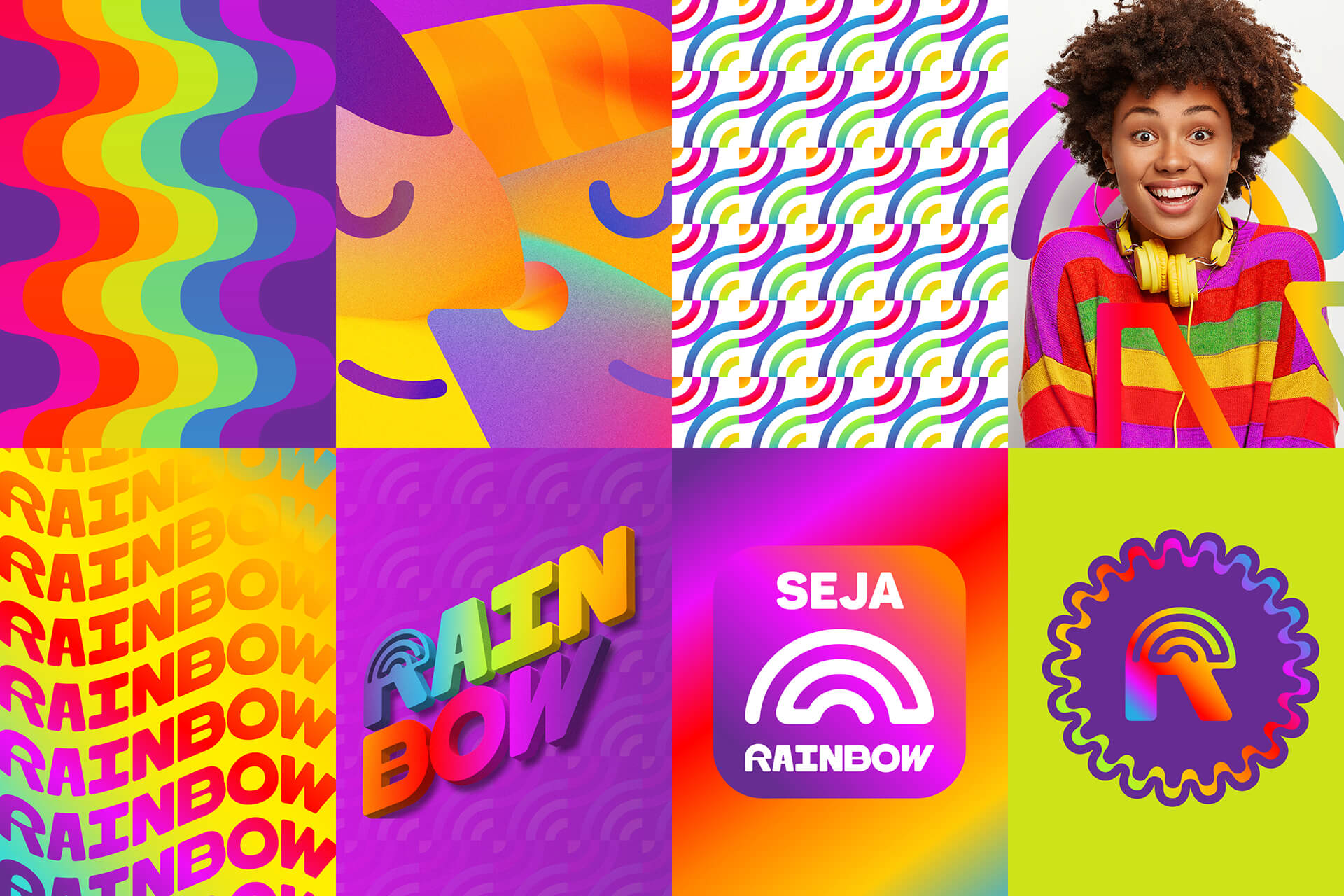 考虑到Rainbow未来将涵盖的细分市场的多样性,我们专注于创造一种多功能的视觉识别,能够适应不同的环境和领域,而不会失去其充满活力和流行的本质。我们的灵感基于彩虹的颜色,品牌的象征,以及彩虹唤起的特征 - 欢乐,和谐,庆祝和美好事物。