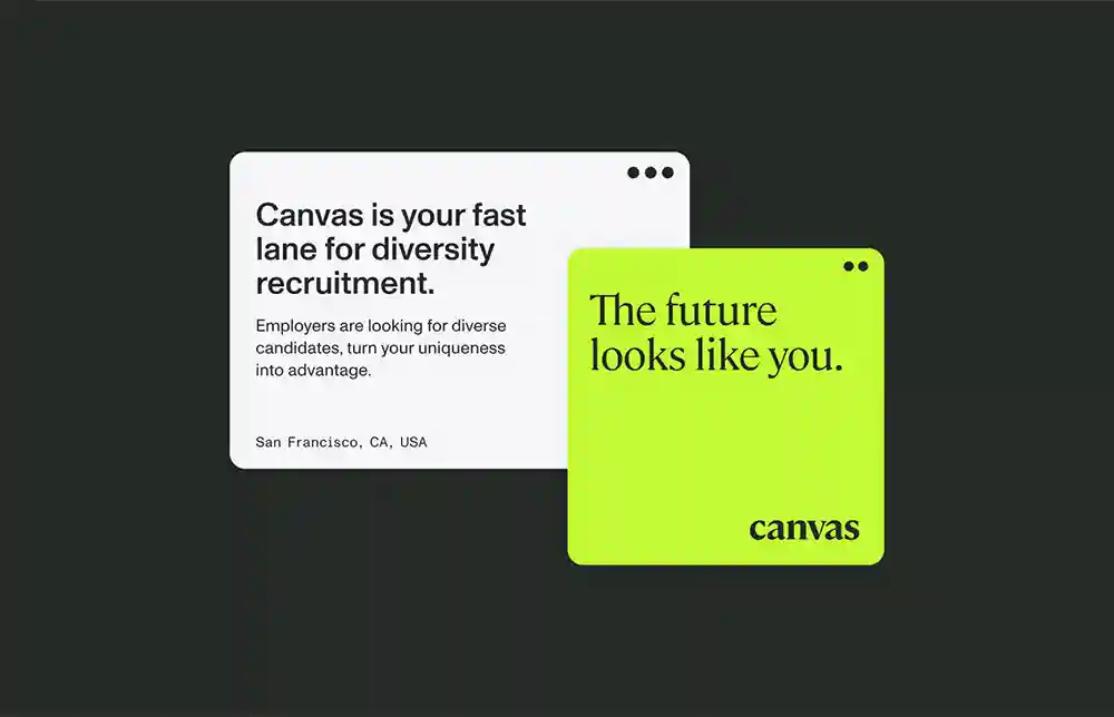 Canvas 是一家位于美国旧金山的多元化招聘平台。今年5月初,Jumpstart 宣布将公司改名为 Canvas,同时还宣布获得了2000万美元的新融资。知名品牌设计公司 Pentagram 完成了 Canvas 全新的