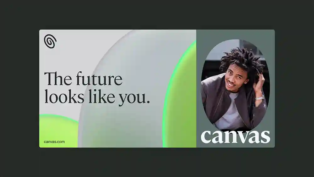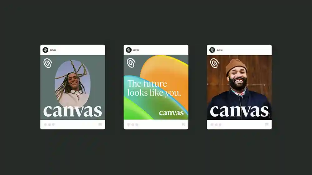 在图形的进一步延伸设计上,椭圆型赋予了 3D 语言,以进一步表达品牌的核心价值和理念。轮廓形状被抽象地渲染为具有动态、折射渐变色彩空间的分层、多面 3D 图形。Pentagram 还创建了一个在线制作工具用来制作这些图形,以便Canvas 可以按需输出想要的任何组合形式。