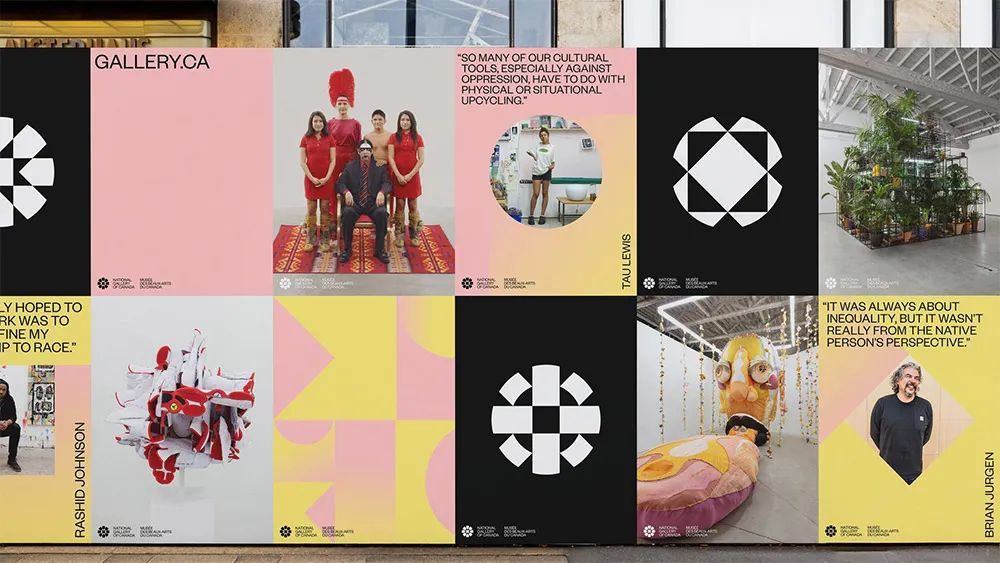 新的LOGO灵活变化的造型灵感来自加拿大建筑师 Moshe Safdie 设计的美术馆大厅的玻璃天花板。它邀请观众进入,并向外辐射以创造一种归属感。