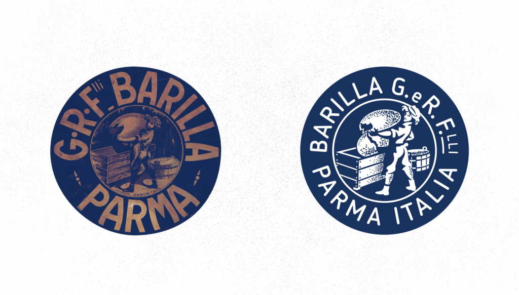 仍然是斜体和无衬线字体的字体变得略微僵硬,从友好的圆形变为更有条理和易碎的外观,通过更好地传递其形状(尤其是在“L”和“I”可比的“L”和“I”扁面条和 通心粉 / maccherone );而颜色则因不太亮的白色和趋于胭脂红的红色而减弱。这种变钝传递了一定的成熟度,一种与传统同义的老化,以及对像意大利面或饼干等小麦制成的产品的质量保证。