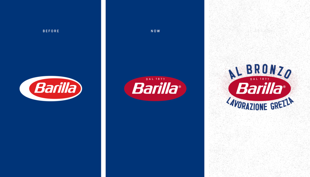 如果说品牌一直能够在其接连不断的视觉标识中培养欲望和贪食,逐渐拉长形成众所周知的白色和红色双椭圆,今天它似乎想安定下来,突出它的长寿,以脱颖而出?;跫?。添加了“dal 1877”字样和旧标志——有时让人想起蛋清和蛋黄,这是自 1910 年以来百味来意大利面食谱和标志性标志的关键成分;有时,涂成红色的诱人指甲被简化为一个红色椭圆形,将