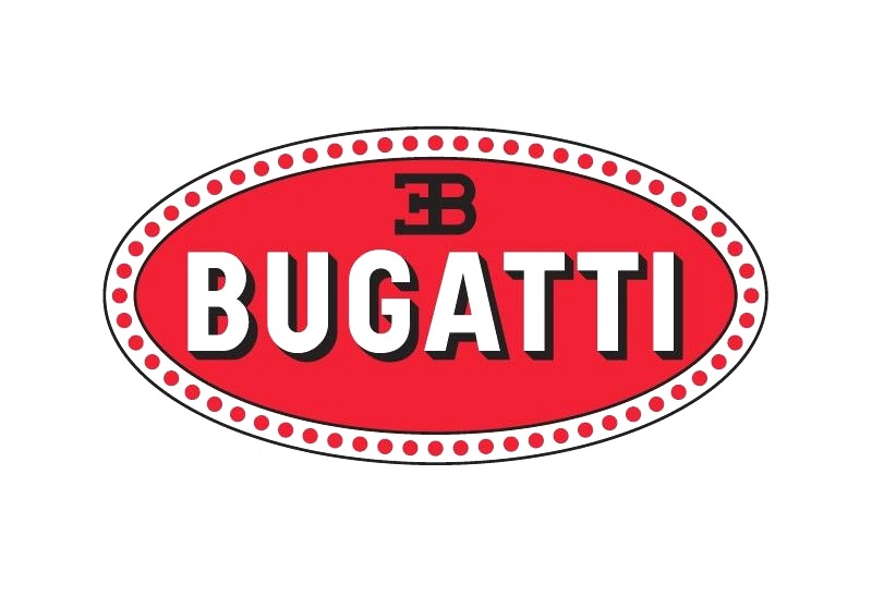 布加迪 布加迪商标中的英文字母即布加迪,上部EB即为埃托尔布加迪英文拼音的缩写,周围一圈小圆点象征滚珠轴承,底色为红色。