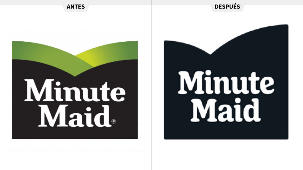 Minute Maid标志保留了其正式特征,但现在仅在黑色背景上,没有先前设计的绿色装饰或顶部框架。通过这种方式,新徽标在 1945 年的第一个 Minute Maid 徽标的线条中更加扁平化,并带有更圆的排版。