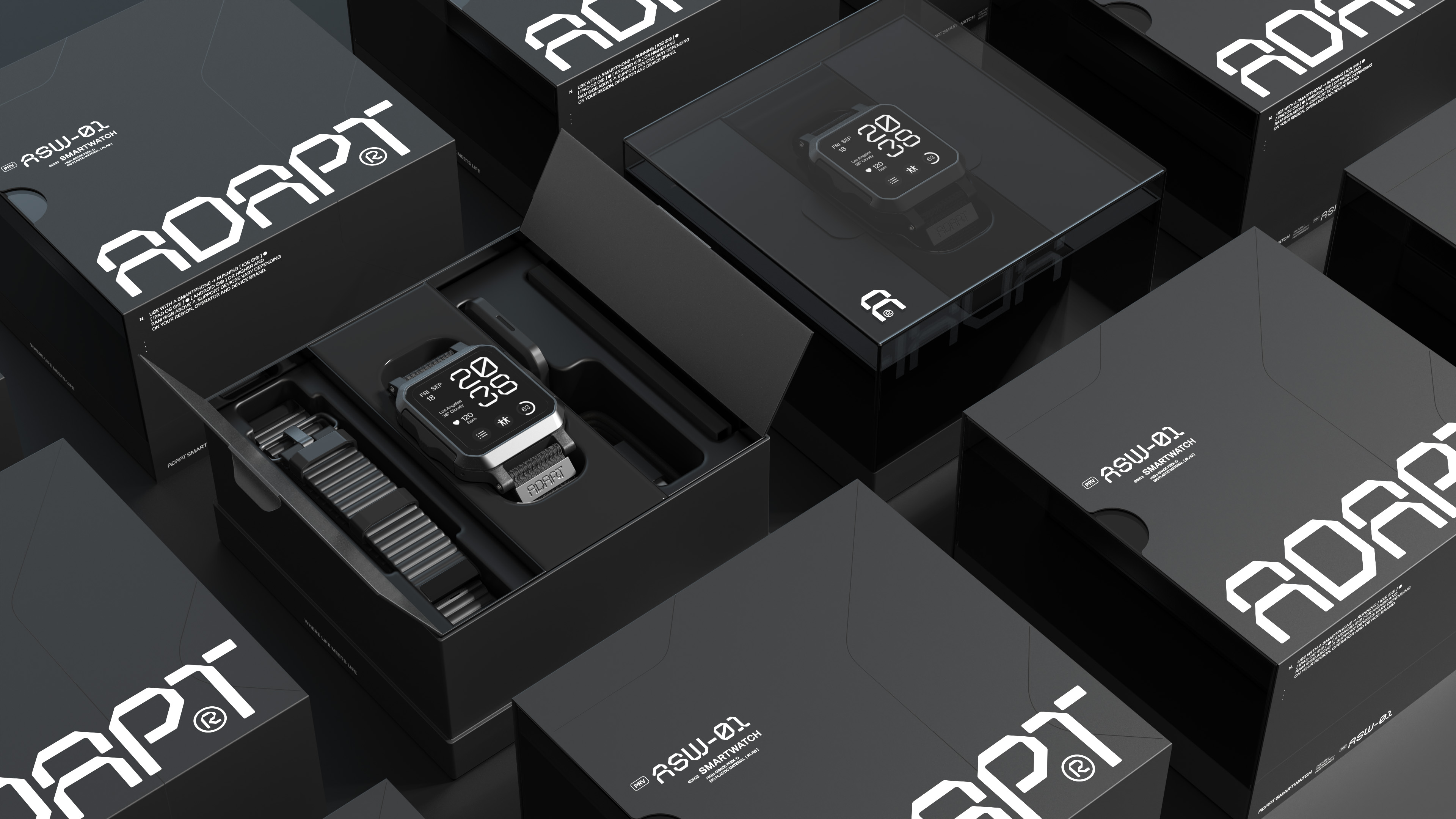品牌项目是为“ADAPT”设计的,这是一个受Techwear时尚启发的智能手表品牌,旨在支持消费者生活中的最大活动。