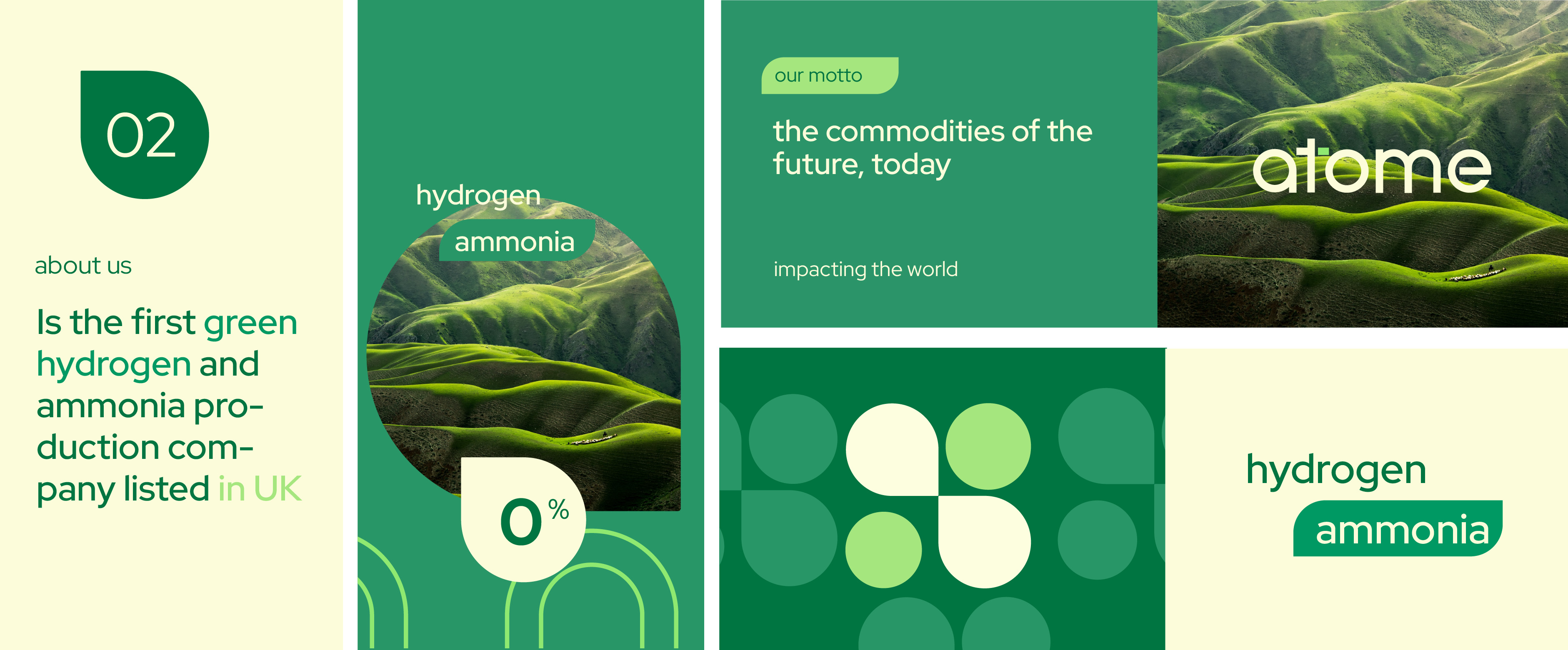 总之,Atome Energy PLC的品牌重塑成功地抓住了他们使命和愿景的本质,反映了他们作为绿色氢和氨生产领导者的地位。凭借其新的视觉识别,Atome Energy PLC准备应对未来的挑战,并继续为全球可持续增长和实现净零排放目标做出贡献。