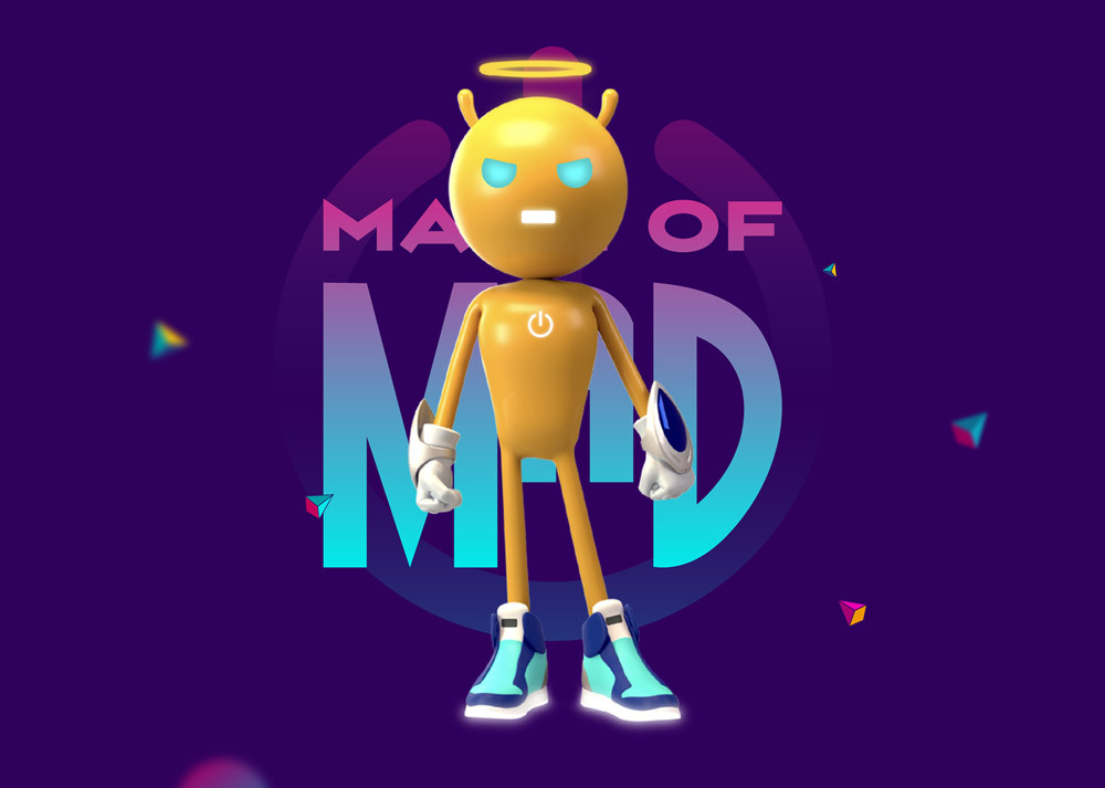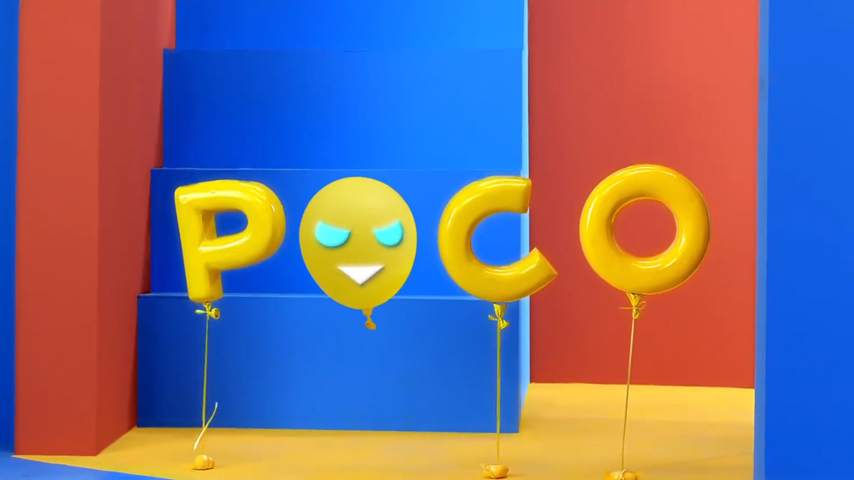 表情头顶的光环代表了一种善良的感觉,两只天线触角可以通过心灵感应传递快乐,重新定义疯狂而专业设计的 POCO 品牌。独特的三角形嘴巴巧妙地暗示了 POCO 机智有趣的品牌理念。