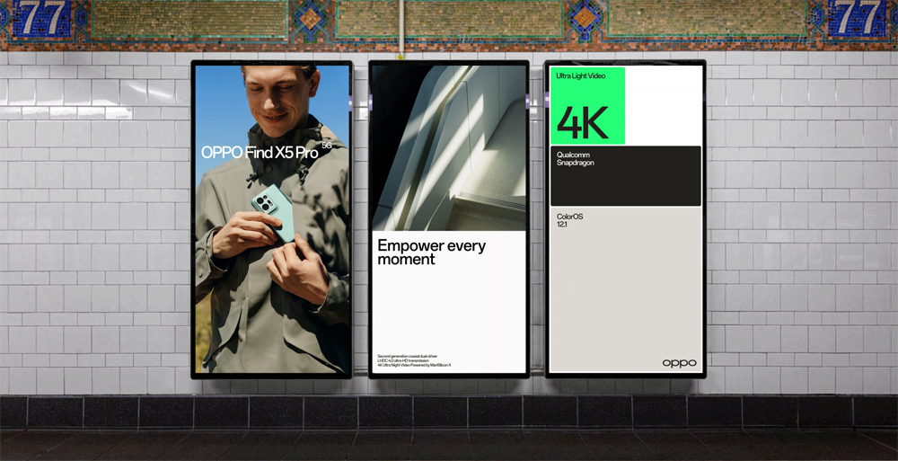 SDL为OPPO开发了定制的版式和配色方案,以增强品牌的独特性和视觉冲击力。新的配色方案不仅符合现代审美趋势,也与OPPO的品牌价值紧密结合,传达出创新和活力。