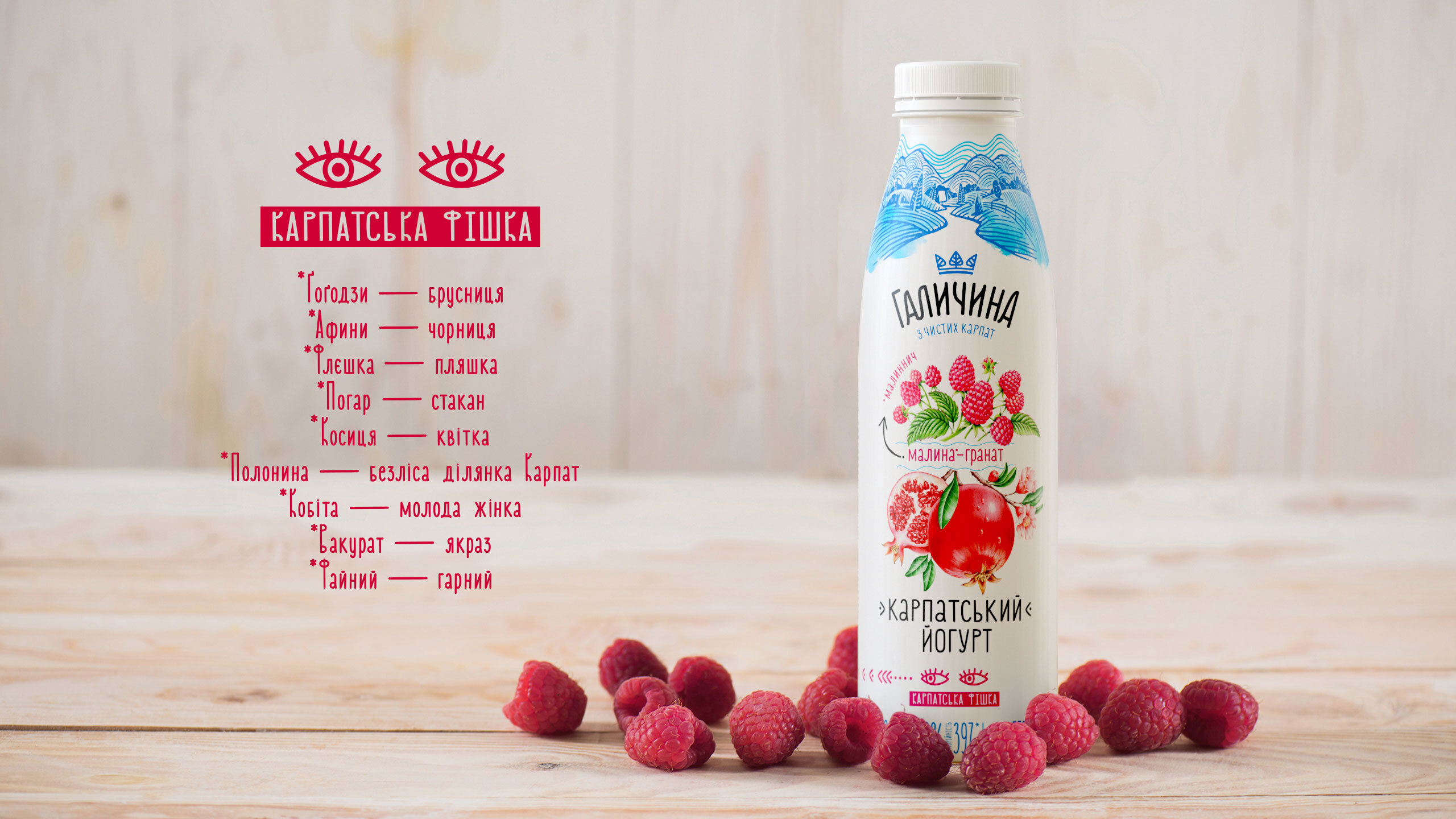 在寻找东西的同时,客户的团队在喀尔巴阡山脉上下穿行。客户的亮点是新的原创风味和语言发现??Χ挖浞窖云舴⑽颐侵匦律笫恿餍锌谖丁N颐翘岬搅酥钊?gogodzy*、afyny* 等罕见的浆果本地名称,从而为独特的产品增添了更多风味。具有六个 SKU(三个 flyshkas* 和三个 pohars*)的新产品线提供了加利西亚方言的简短历史概述。