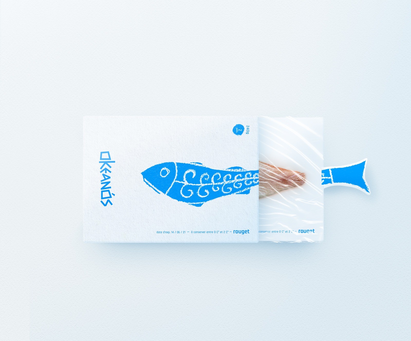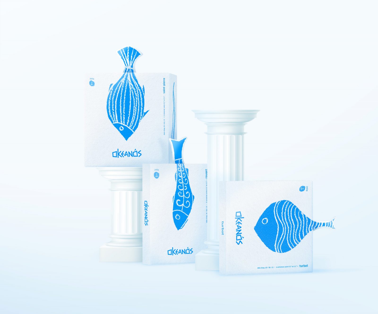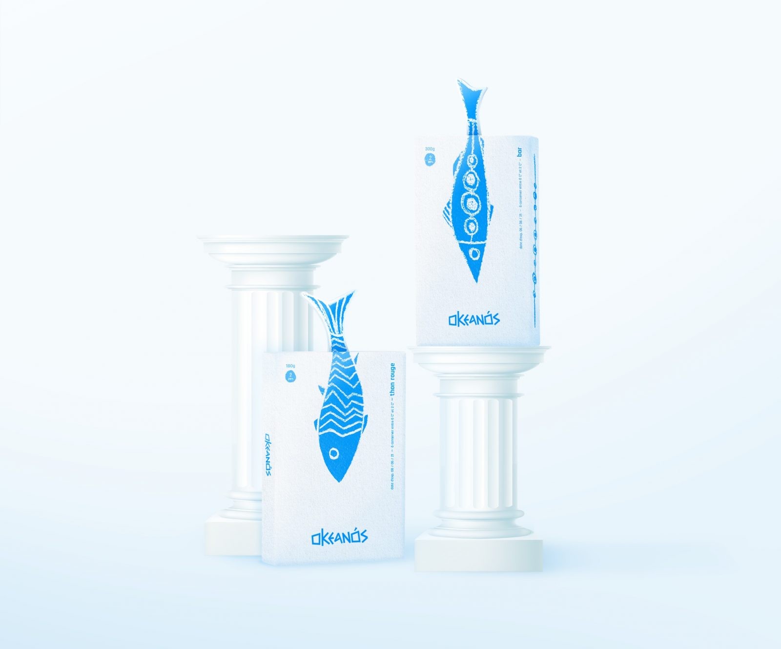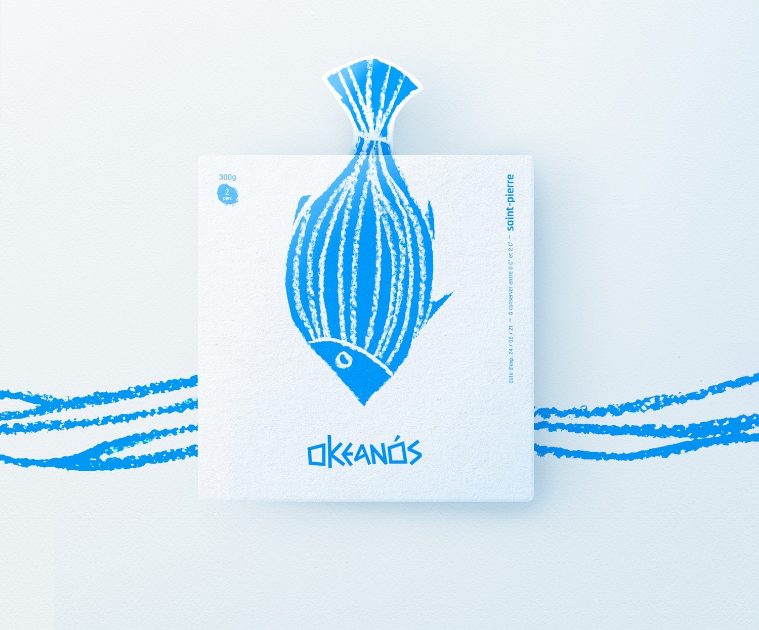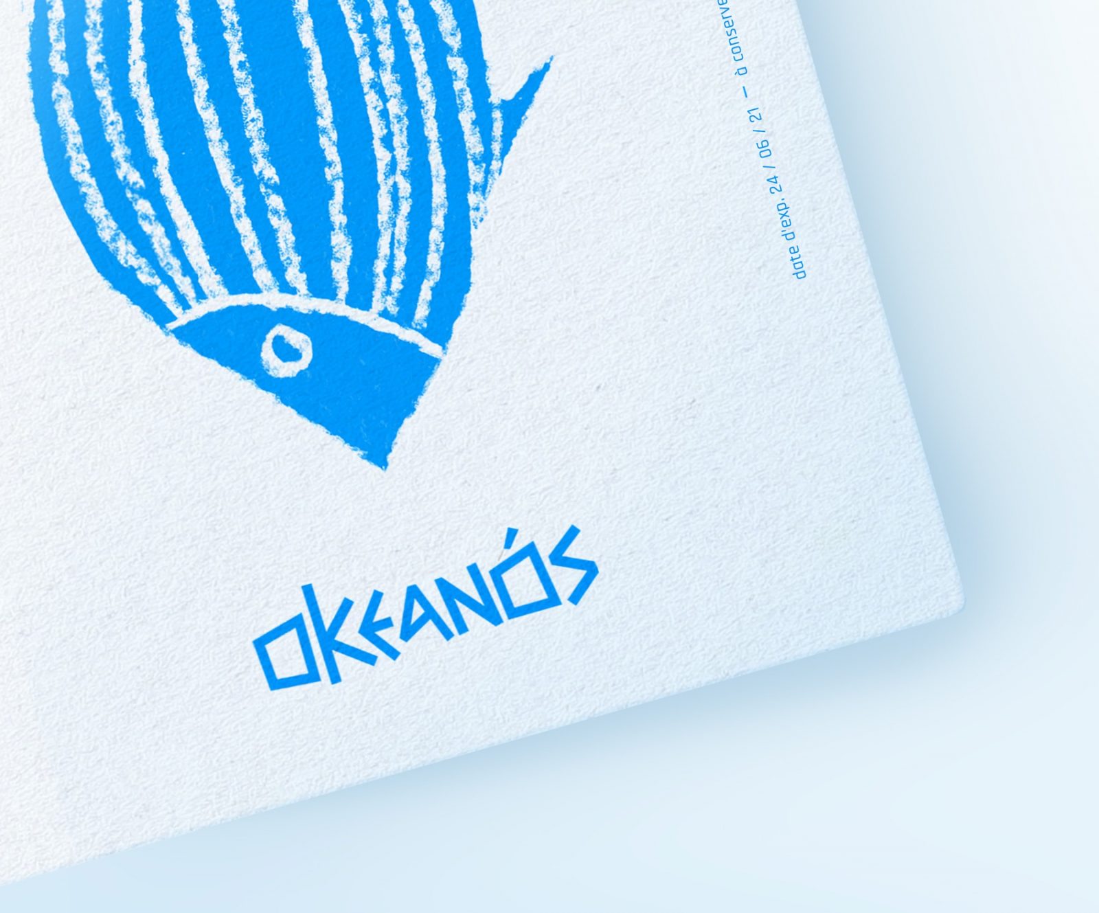 在希腊语中,Okeanos 的意思是海洋。我做出这个选择是为了给品牌一个顶级的感觉。类似于持续词汇中的词,它为这种视觉识别带来了一定的高贵,就像Okenanós提供的产品包装设计一样。这个名字激发了希腊及其清新的色彩,明亮的白色和强烈而独特的蓝色。具有“雕刻”外观的排版取自希腊风格。这个标志很有个性。